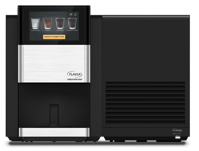 The Flavia Creation 600 features a 7″ touchscreen and integrated smart connectivity via Flavia IQ, giving users access to over 14 hot and cold beverage options—from drip coffees and specialty lattes to teas and infused waters. It’s pack‑to‑cup brewing process and in‑cup frothing technology eliminates flavor or allergen carryover and supports dairy and non‑dairy milk alternatives. We offer this machine with a cold brew option without the need for ice.
